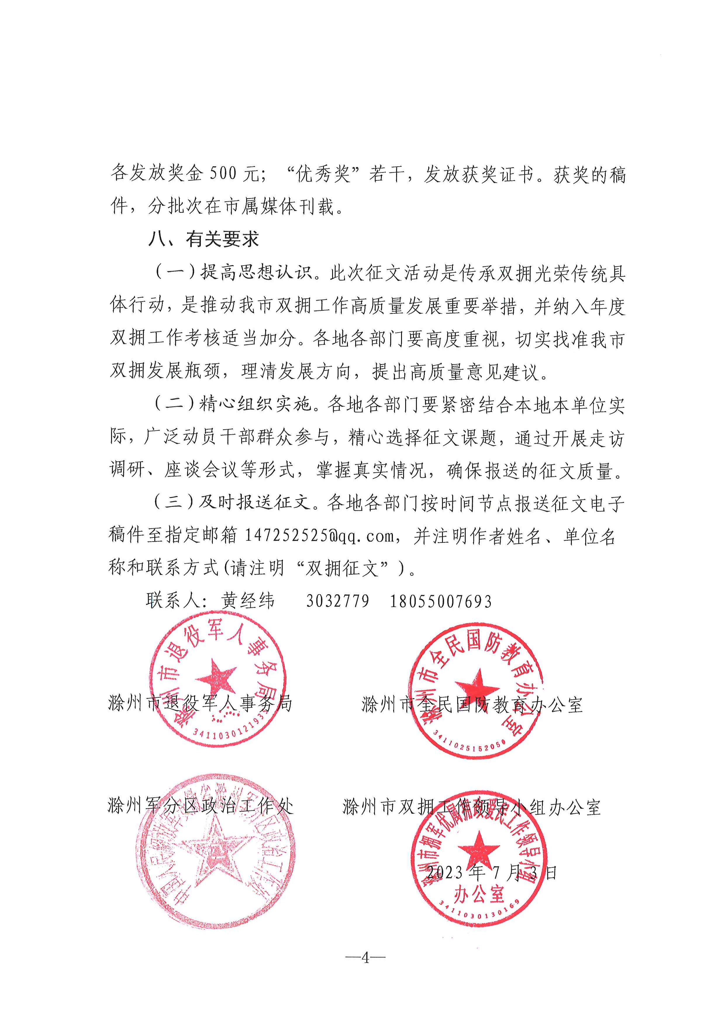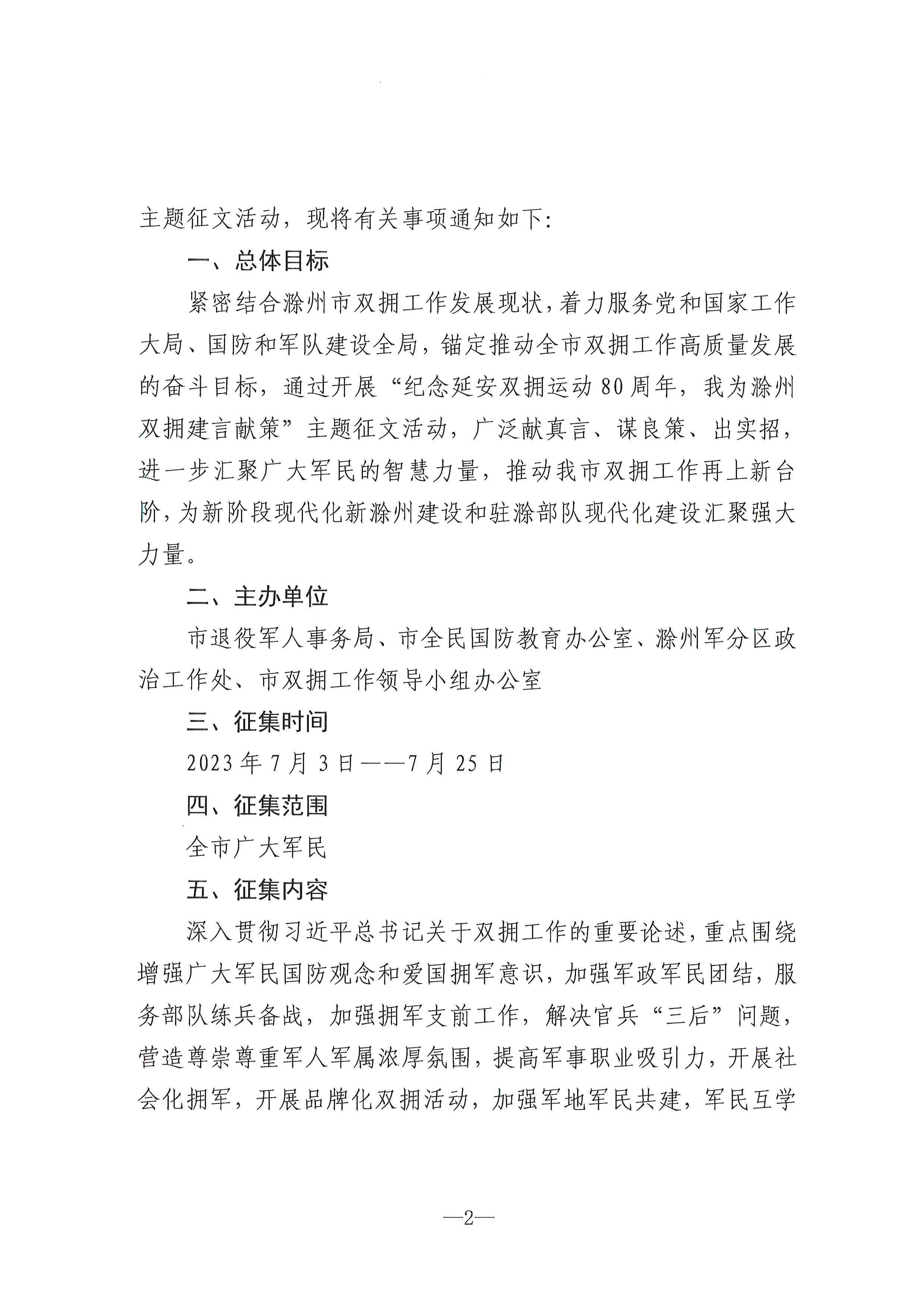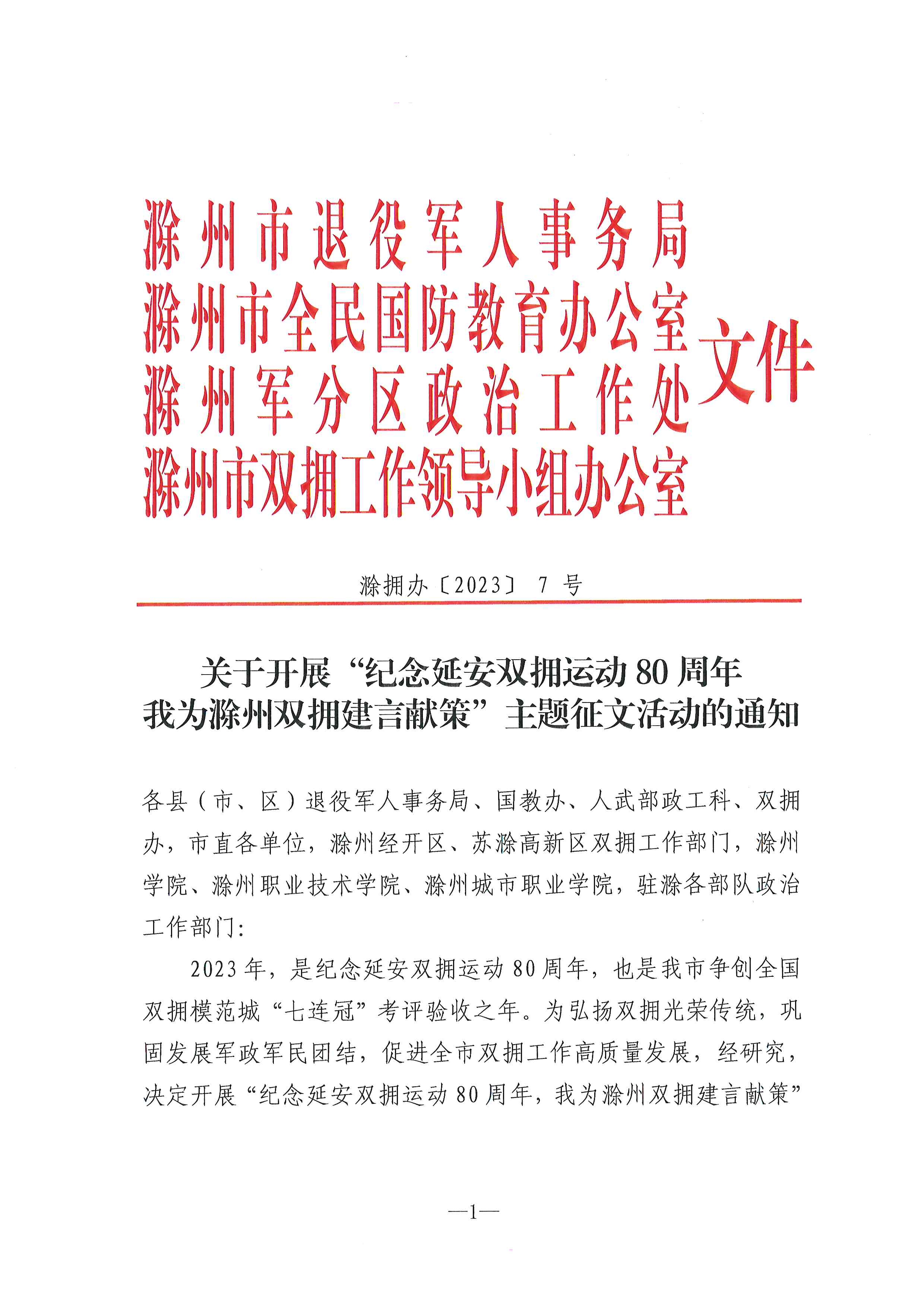 关于开展“纪念延安双拥运动80 周年我为滁州双拥建言献策”主题征文活动的通知
