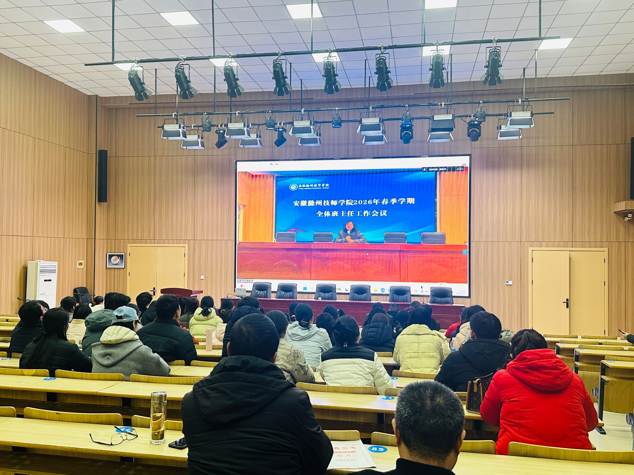 春回大地,万象更新。为深入落实立德树人根本任务,进一步加强班主任队伍建设,明确新学期育人职责,确保学校学生工作平稳开局、高效落实,2026年3月5日下午,安徽滁州技师学院分别在新老两个校区以“现场+视频”的形式召开2026年春季学期全体班主任工作会议。学院党委委员张婷婷出席会议并讲话,学生处处长及学生处有关工作人员、各系党支部书记及全体班主任参加会议。