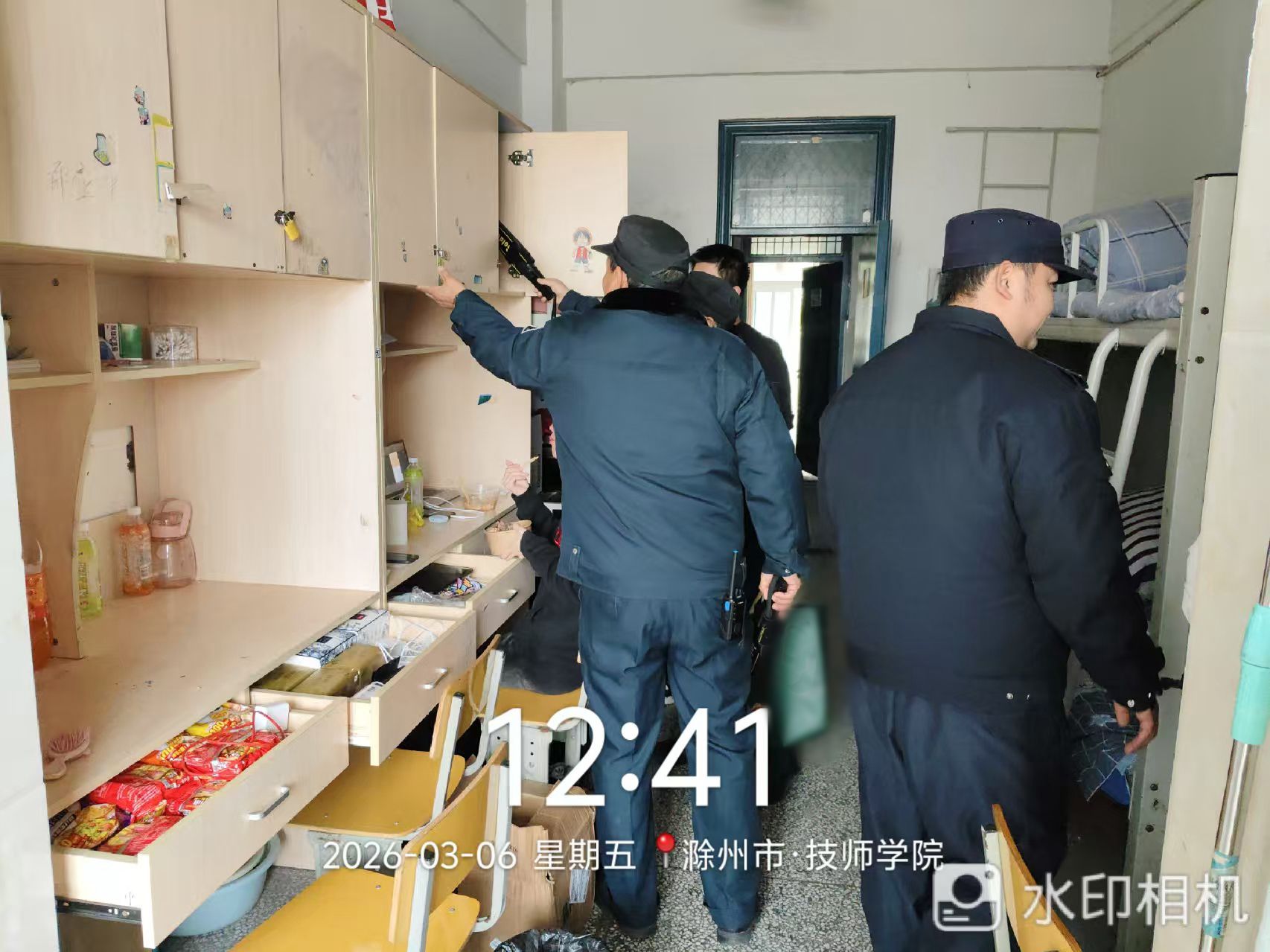 排查过程中,重点检查食堂卫生状况,查看操作间、储物间、就餐区清洁消杀落实情况。随后前往学生宿舍,重点排查宿舍卫生情况,查看宿舍内务整理、通风换气、卫生清扫情况,及时指出宿舍内存在的卫生死角;同时,专项开展宿舍违禁品排查,重点检查是否存在大功率电器、易燃物品、管制器具等违禁物品,保障学生住宿安全。针对排查中发现的问题,现场逐一登记建档,明确责任部门、责任人和整改时限,要求能当场整改的立即整改到位,不能当场整改的要建立台账、实行闭环管理,确保所有安全隐患整改落实落细、见底清零。