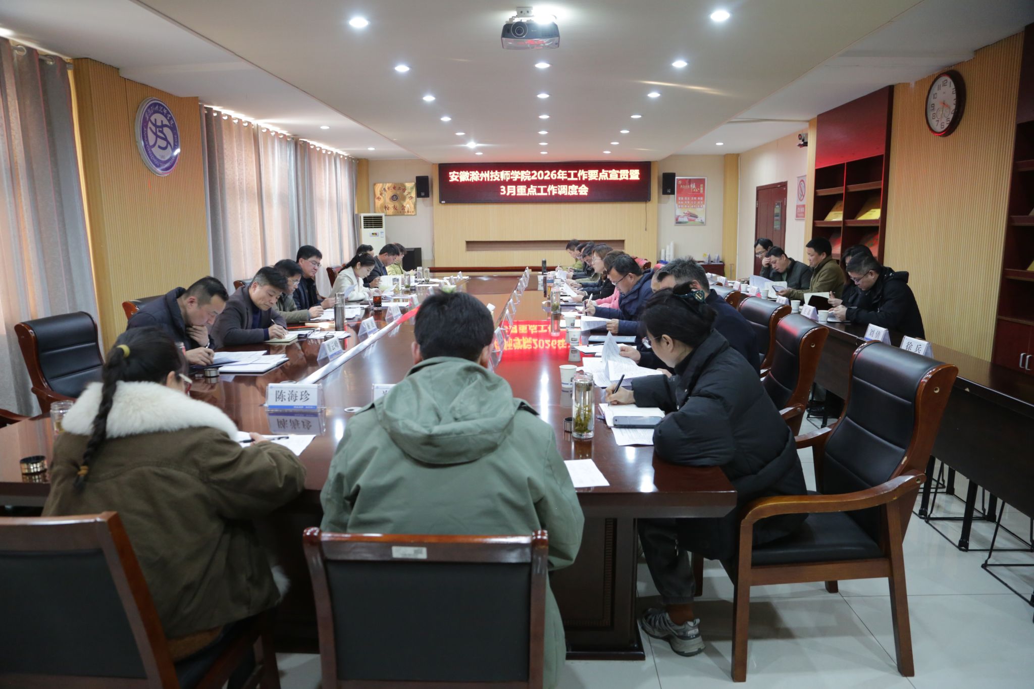 3月9日下午,学校在行政楼306会议室召开2026年度工作要点宣贯暨3月重点工作调度会。校领导班子全体成员,各部门、各系主要负责同志参会,会议由院党委副书记、院长徐立娟主持。