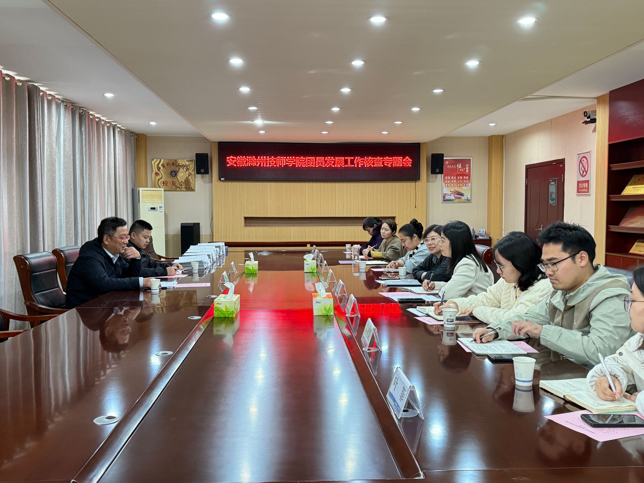 4月21日下午,团滁州市委组织部部长田增清一行莅临学校核查指导发展团员工作。校党委委员张婷婷出席核查专题会,校团委书记曹锐主持会议,校团委、各系团总支相关负责同志参会。