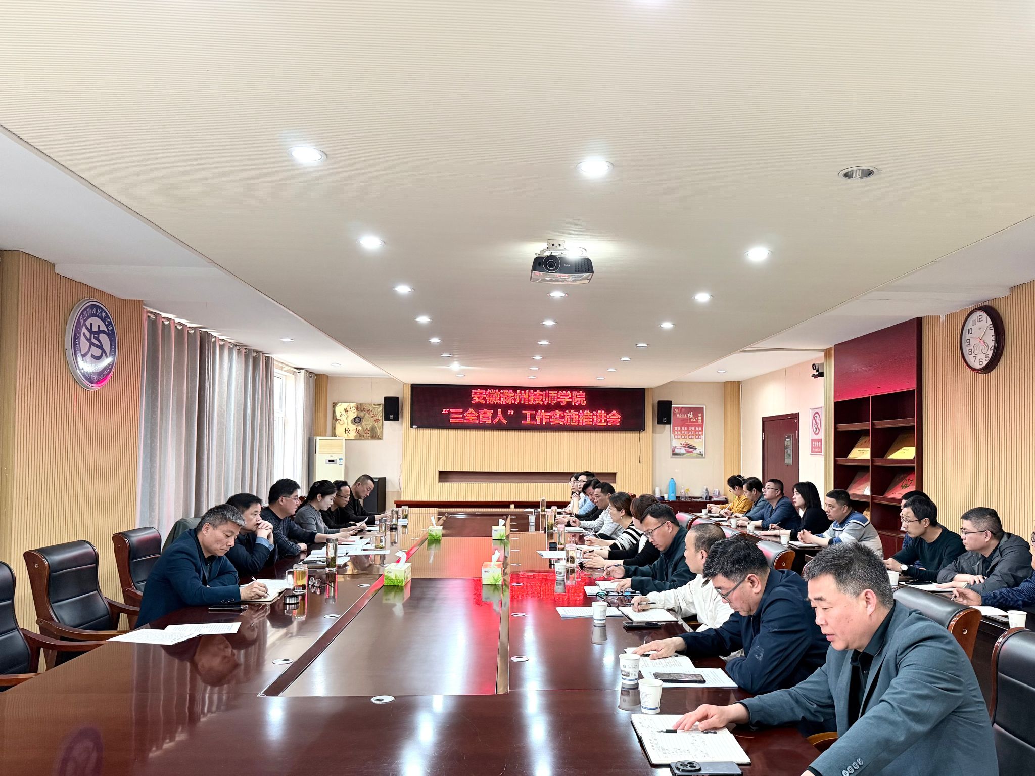 会议详细解读了《安徽滁州技师学院“三全育人”工作实施方案》,明确各部门、各系部育人工作职责与落地标准。与会人员围绕实施方案内容,结合岗位工作实际进一步提出建设性意见建议,夯实了方案全面落地基础。