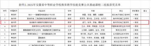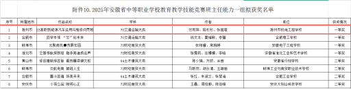 近日,2025年安徽省中等职业学校教育教学技能竞赛获奖名单公布。学校教师团队表现优异,斩获一等奖2项、二等奖2项、三等奖6项,获奖总数居全市第一,充分展现了学校的整体教学水平与教师团队的核心竞争力。