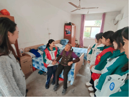 打扫完卫生后,师生们纷纷走进老人的房间,与他们亲切交谈。大家围坐在老人身边,倾听他们讲述过去的故事,分享生活中的点滴趣事。现场欢声笑语不断,气氛温馨而融洽。师生们的陪伴让老人们感受到了浓浓的关爱,脸上洋溢着幸福的笑容。