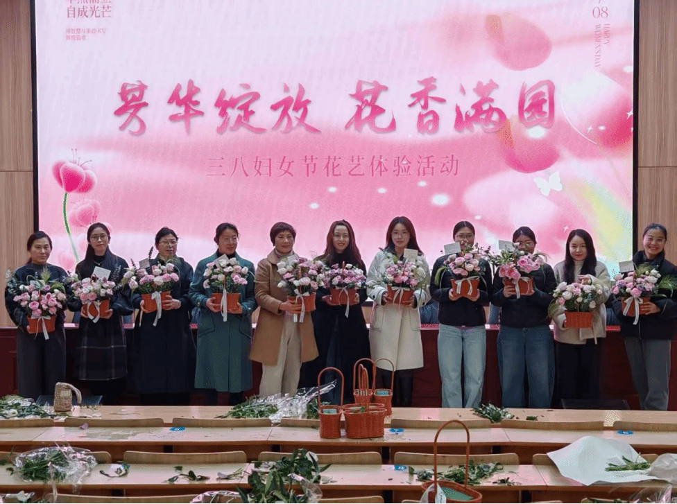 阳春三月,惠风和畅。3月15日上午,校工会精心组织开展 “芳华绽放 花香满园” 三八妇女节花艺体验活动。