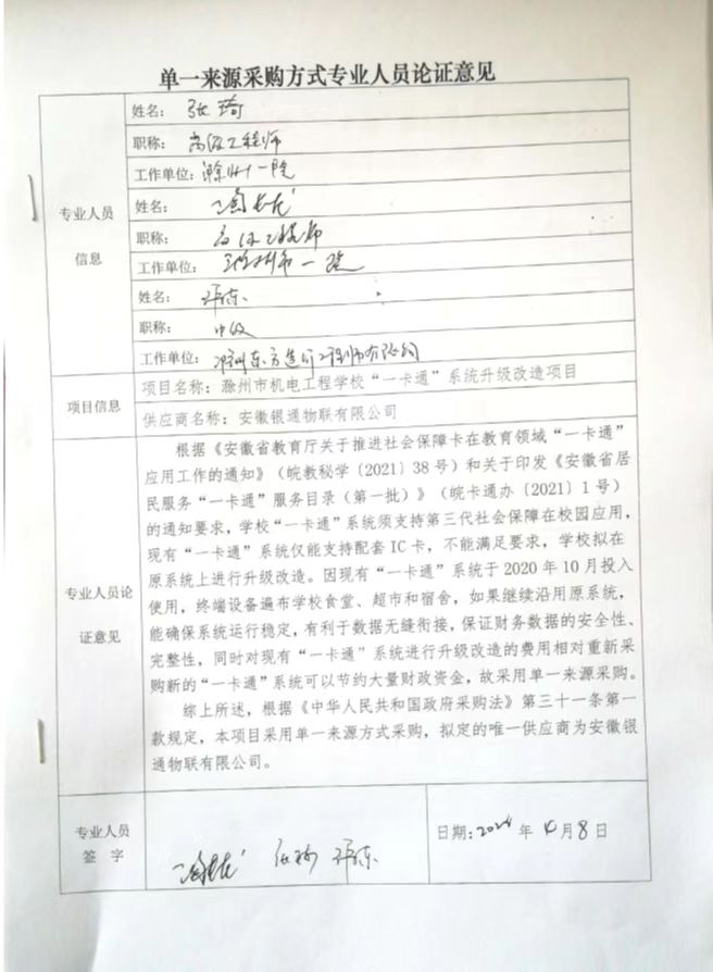 根据《安徽省教育厅关于推进社会保障卡在教育领域“一卡通”应用工作的通知》(皖教秘学〔2021〕38号)和关于印发《安徽省居民服务“一卡通”服务目录(第一批)》(皖卡通办〔2021〕1号)的通知要求,学校“一卡通”系统须支持第三代社会保障在校园应用,现有“一卡通”系统仅能支持配套IC卡,不能满足要求,学校拟在原系统上进行升级改造。因现有“一卡通”系统于2020年10月投入使用,终端设备遍布学校食堂、超市和宿舍,如果继续沿用原系统,能确保系统运行稳定,有利于数据无缝衔接,保证财务数据的安全性、完整性,同时对现有“一卡通”系统进行升级改造的费用相对重新采购新的“一卡通”系统可以节约大量财政资金,故采用单一来源采购。