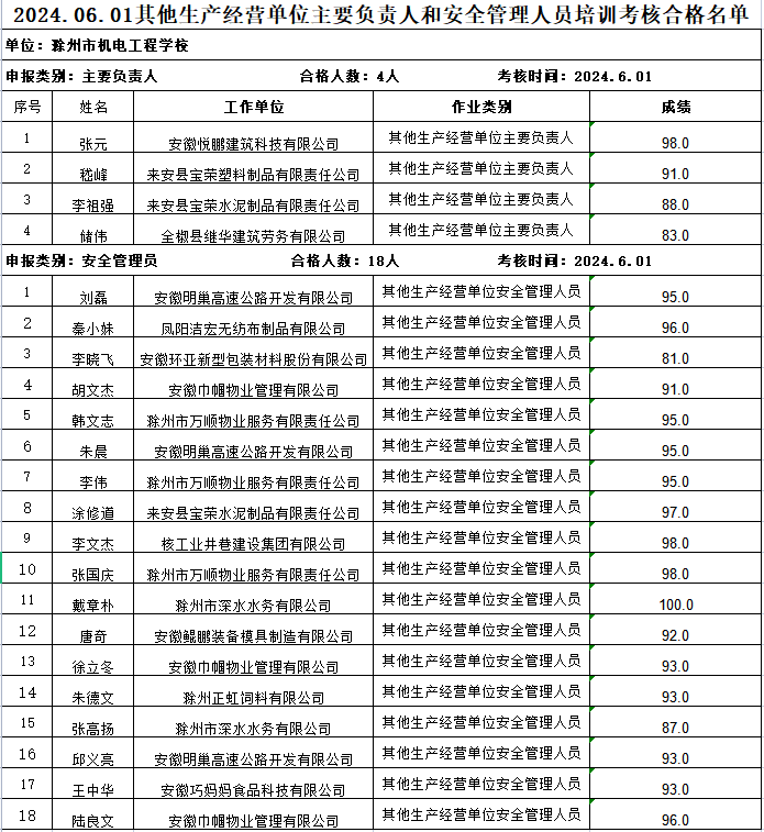 2024.06.01其他生产经营单位主要负责人和安全管理人员培训考核合格名单公示