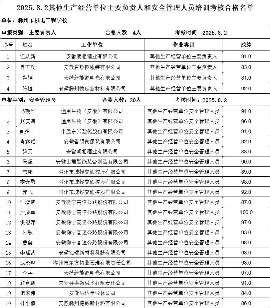 2025.8.2其他生产经营单位主要负责人和安全管理人员培训考核合格名单