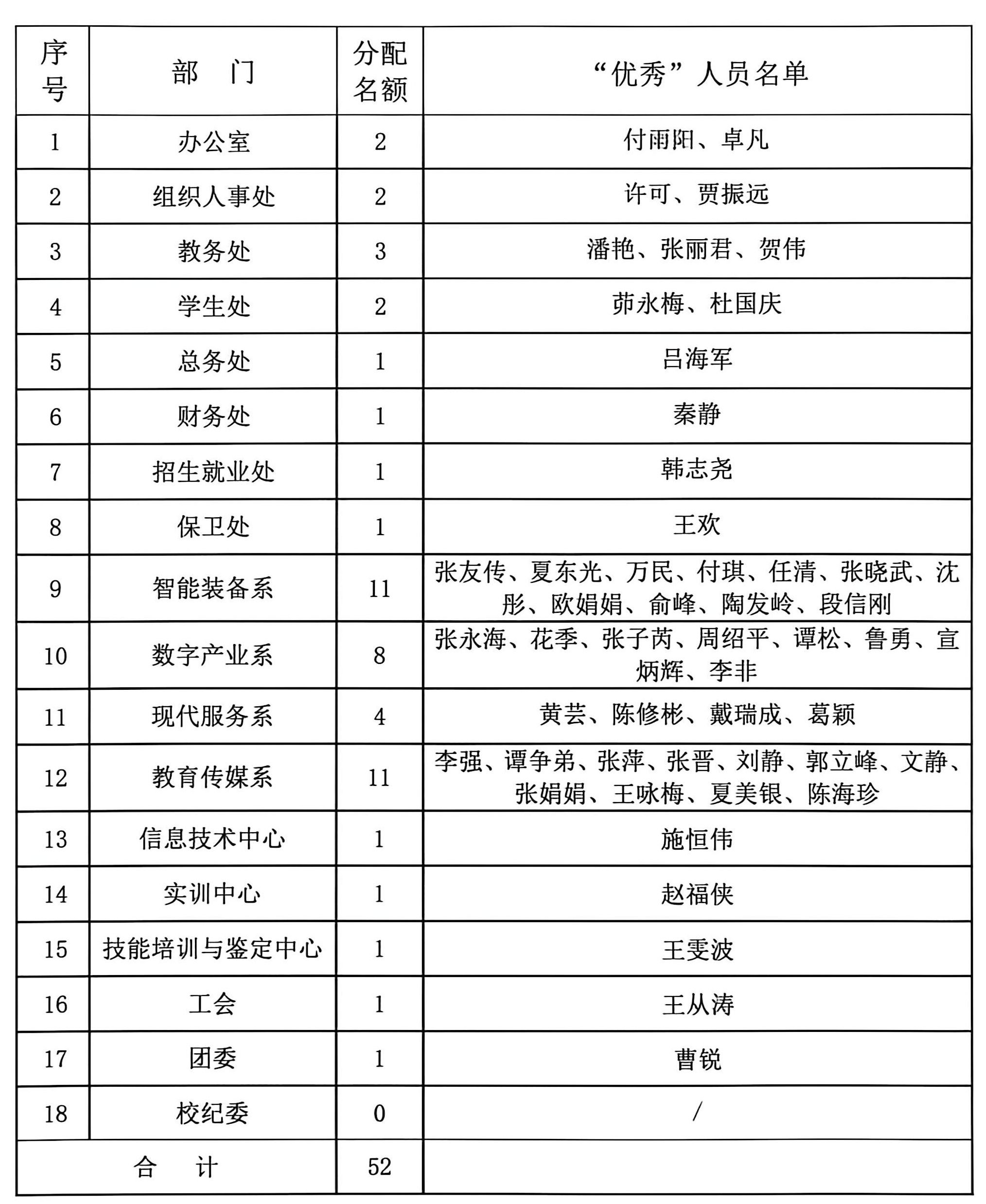 安徽滁州技师学院2025年度考核“优秀”人员名单