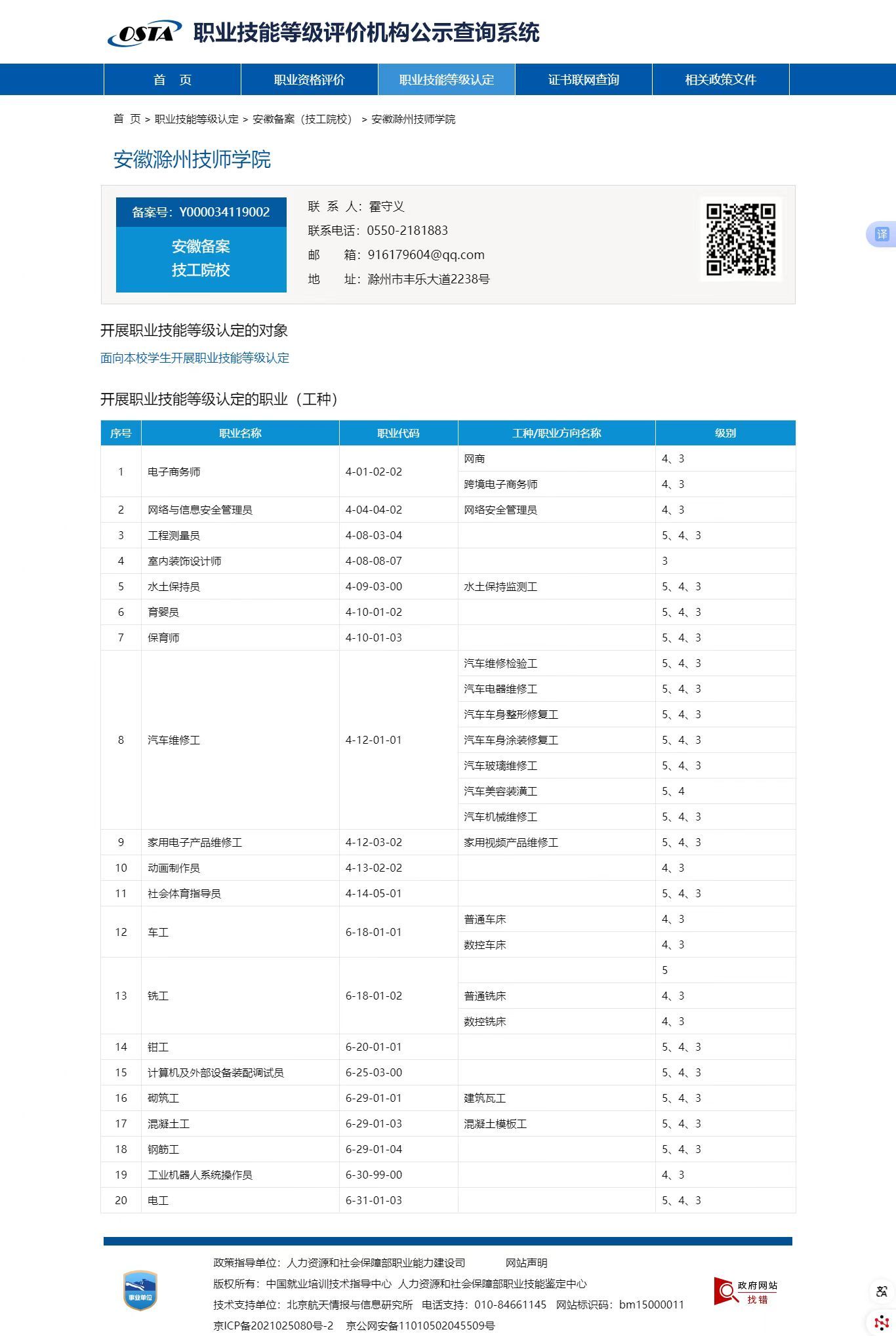 安徽滁州技师学院面向本校学生开展职业技能等级认定的对象的公告