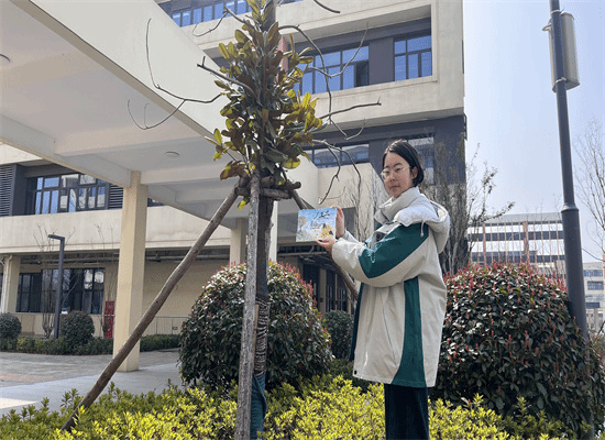 活动中,同学们通过查阅资料、动手制作树木介绍牌等方式,深入了解校园内各类树木的品种、科属、生长习性及实用价值。大家发挥创意,将所学知识融入艺术设计,精心绘制出一块块色彩鲜明、内容生动的树木“身份证”。随后,这些承载着知识与心意的介绍牌被悬挂在对应树木上,成为校园里一道独特的科普风景线。挂牌结束后,同学们在活动横幅上郑重签名承诺,表达爱护花草树木、守护绿色校园的决心,并在自己亲手挂牌的树木前打卡留影,记录下这一富有意义的时刻。