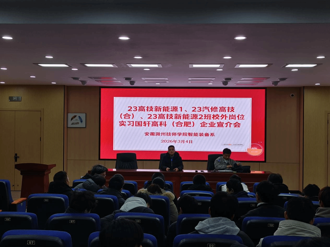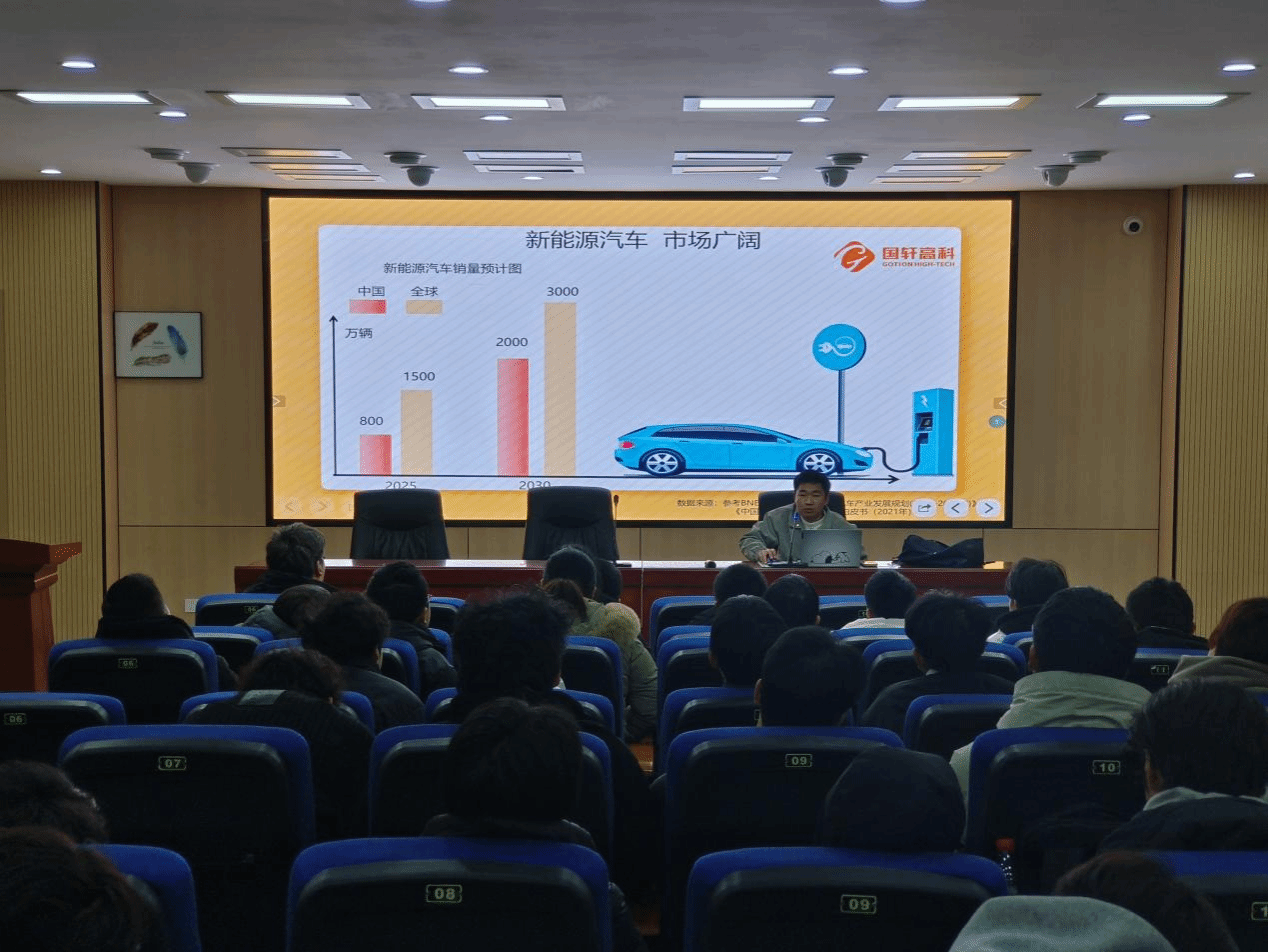 实习前,系部组织实习动员与企业宣介会,安排讲解安全规范、职业礼仪与实习任务;国轩高科代表宣讲企业发展历程与核心业务,展示新能源汽车广阔市场前景,介绍动力电池生产、质检等对口岗位,说明人才培养路径及实习薪资、住宿、保险等福利保障。