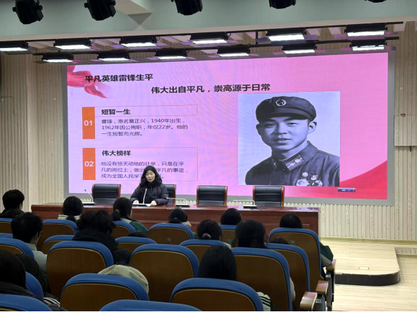 随后,中共党员、思政课教师王家茹以“雷锋精神 永放光芒”为主题,为同学们带来了一堂思政公开课。她将雷锋的“螺丝钉精神”与校园“一度电精神”深度融合,通过故事分享、互动讨论等形式,阐释了党建引领下思政教育与节能实践相结合的意义,引导学生以雷锋同志为榜样,把勤俭节约的雷锋精神转化为“人走灯灭、人离电断”这种看得见、做得到的实际行动。
