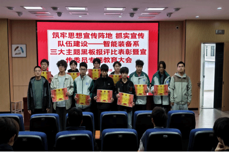 为厚植校园文化氛围,落实文化育人理念,4月23日,智能装备系在机电楼报告厅组织开展了黑板报评比表彰暨宣传委员专题教育大会。活动中,各班级紧扣文化主题、精心构思编排,将学科知识、传统文化、国家安全与德育内容融入版面设计,一幅幅主题鲜明、图文并茂的黑板报,不仅装点了校园空间,更成为潜移默化滋养学生品格的文化阵地。