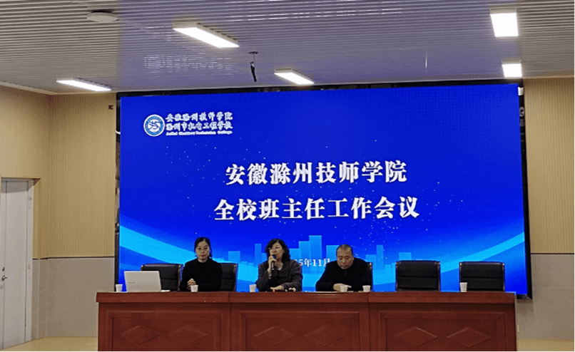 为深入落实立德树人根本任务,进一步加强班主任队伍建设,提高班主任工作实效。2025年11月25日下午和26日下午,安徽滁州技师学院分别在学校老校区、新校区召开全校班主任工作会议。校党委委员张婷婷、学生处处长施文、团委书记曹锐、学生处副处长方芳、各系学管工作人员及全体班主任参加会议。