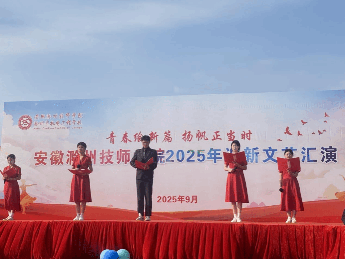 9 月 23 日下午,安徽滁州技师学院(滁州市机电工程学校)“青春绘新篇 扬帆正当时” 2025 年迎新文艺汇演在新校区操场盛大举行。本次汇演由校团委主办,各系团总支协办,为全体新生带来一场充满活力与创意的视听盛宴。