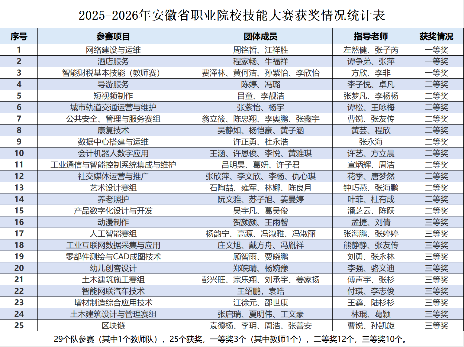 近日,2025-2026年度安徽省职业院校技能大赛圆满收官。我校选派的29支参赛队奋勇拼搏,最终共斩获25个奖项,其中一等奖3项、二等奖12项、三等奖10项,获奖率高达86.2%,成绩位居全省同类院校前列,充分彰显了我校技能型人才培养的显著成效。