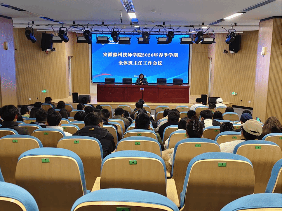 春回大地,万象更新。为深入落实立德树人根本任务,进一步加强班主任队伍建设,明确新学期育人职责,确保学校学生工作平稳开局、高效落实,2026年3月5日下午,安徽滁州技师学院分别在新老两个校区以“现场+视频”的形式召开2026年春季学期全体班主任工作会议。学院党委委员张婷婷出席会议并讲话,学生处处长及学生处有关工作人员、各系党支部书记及全体班主任参加会议。