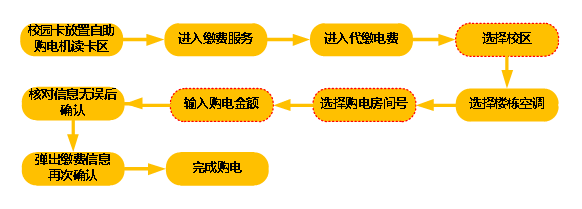 3. 请正确选择校区、楼栋号和房间号,看清空调还是照明,核对无误后进行购电,否则充错房间,房间电量未到的情况由个人自行存担。