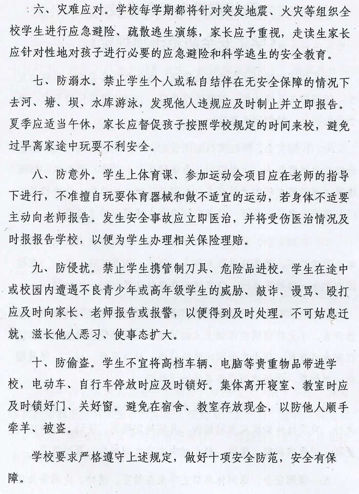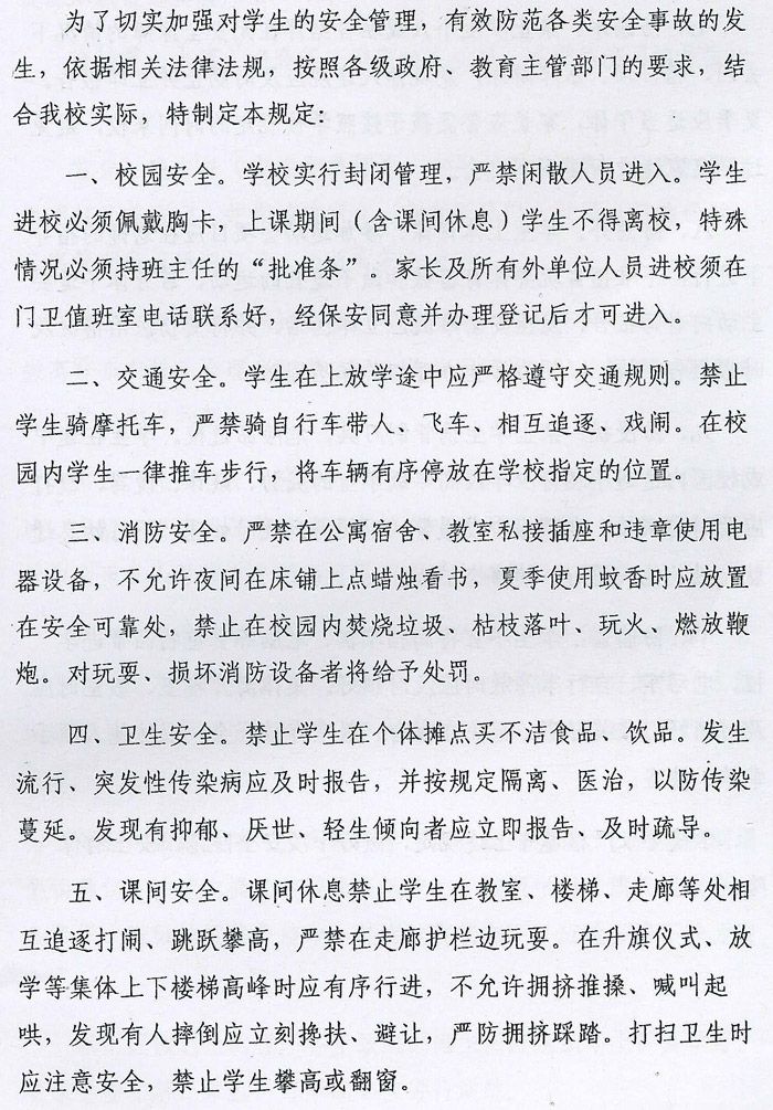 滁州市机电工程学校《学生安全防范十项规定》