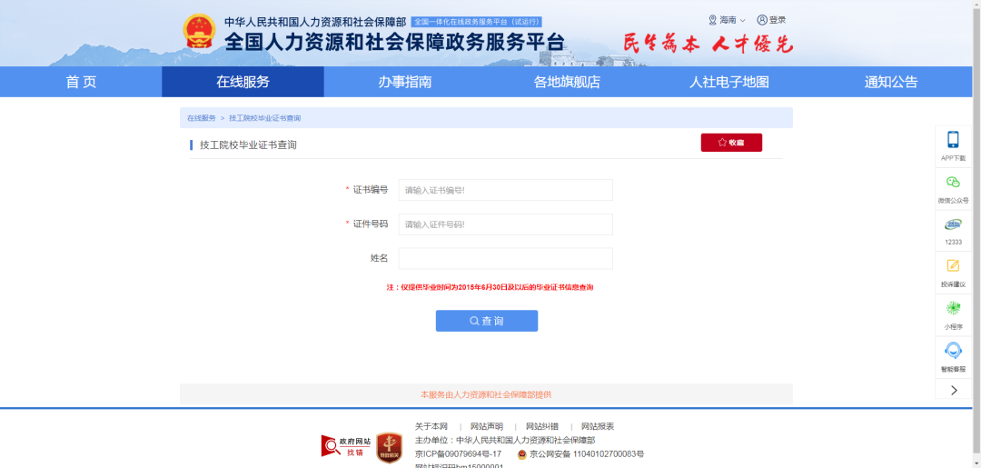 证书查询地址请收藏!技工院校学籍、毕业证、职业资格、技能等级证书