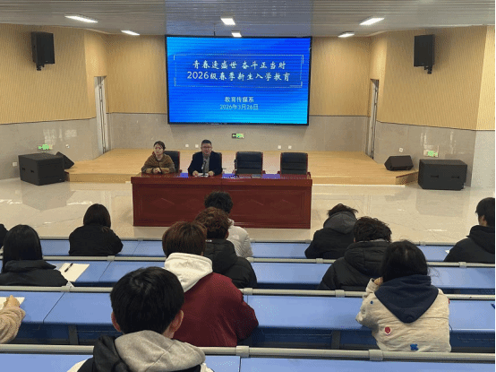 3月26日,教育传媒系在弘艺楼一楼阶梯教室召开2026级春季新生入学教育大会,全系春季新生及班主任参会,会议由系党支部书记王鑫主持并作入学教育讲话。